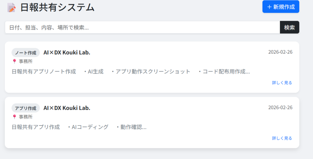 そこで今回、**Google Apps Script (GAS) を活用し、スマホから数秒で報告・検索・共有ができる「日報共有システム」**を自作しました。